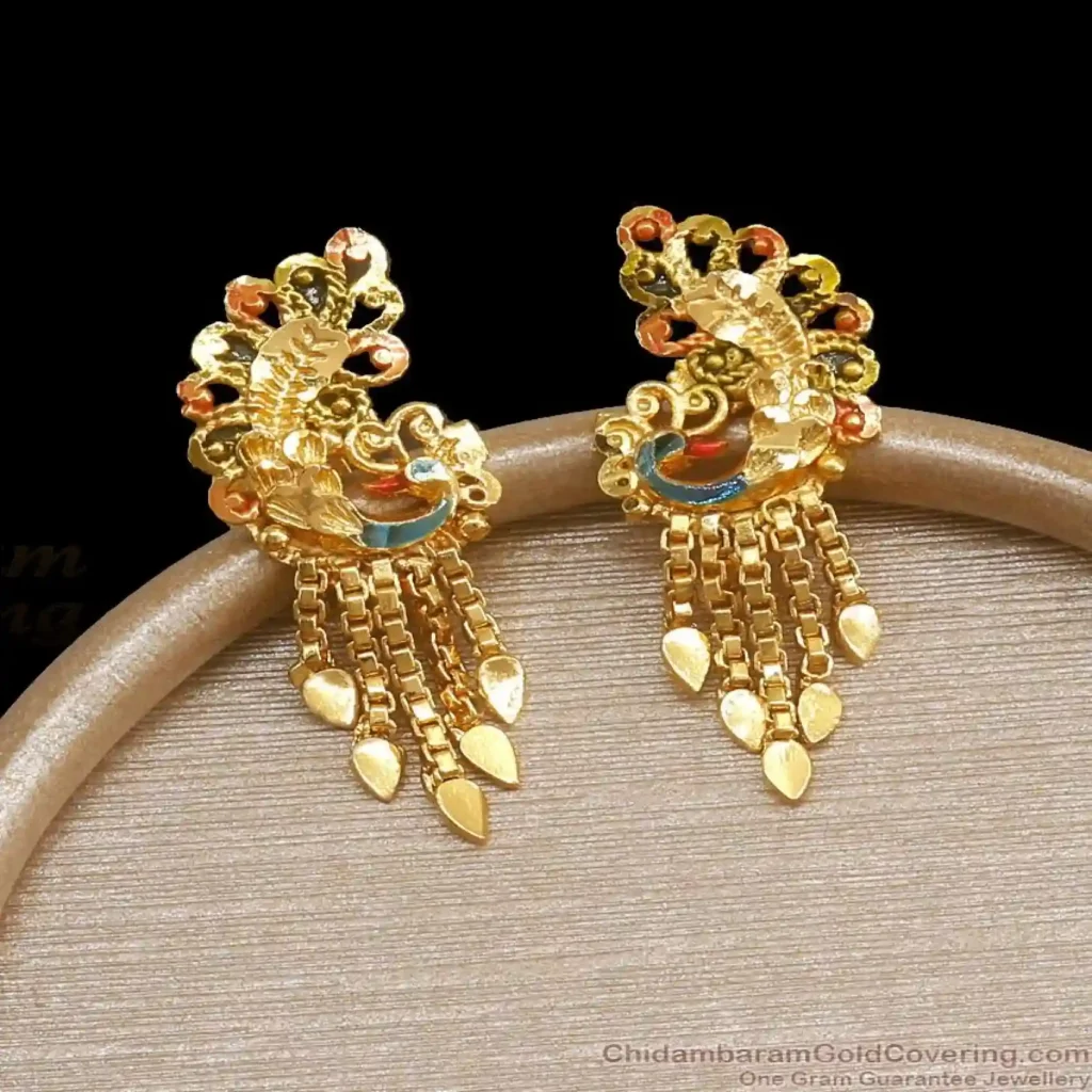 Drop Earrings:Drop earrings थोड़े लंबे होते हैं और चेहरे को elegant look देते हैं।